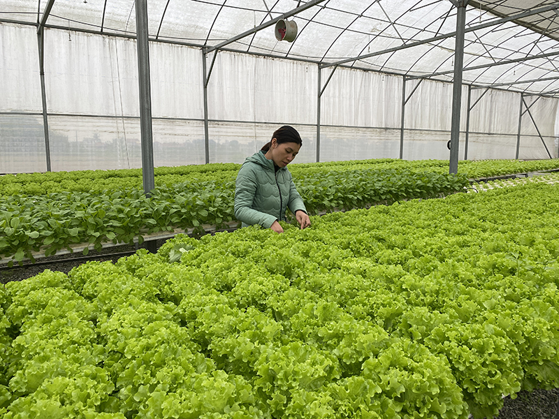 Rau trong nhà màng ứng dụng hệ thống tưới nhỏ giọt ở HTX dịch vụ nông nghiệp xã Phú Lộc (Hậu Lộc).