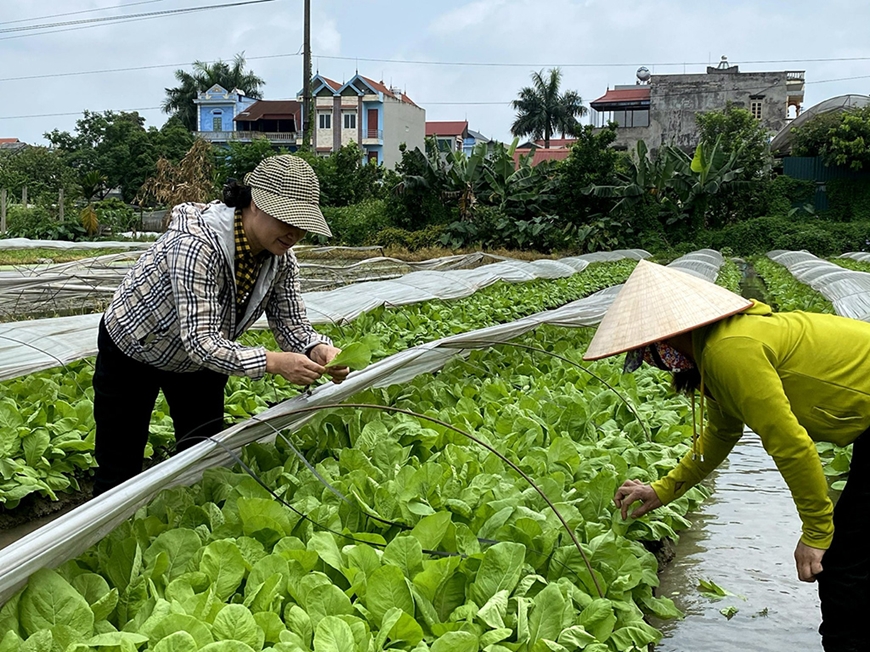 Chăm sóc rau ở Hợp tác xã nông nghiệp Ba Chữ (xã Vân Nội, huyện Đông Anh, TP Hà Nội). Ảnh: QUỐC BẢO