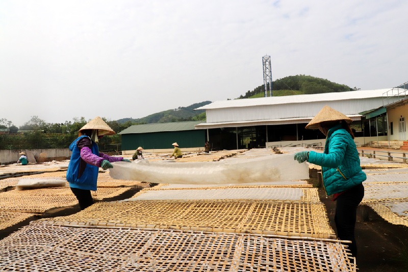Phơi miến dong ở Công ty CP Thương mại và Dịch vụ Bình Liêu.