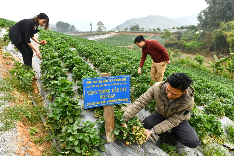 | Mô hình trồng dâu tây của người dân xã Cò Nòi, huyện Mai Sơn (Sơn La) mang lại hiệu quả kinh tế cao. (Ảnh: ĐĂNG KHOA) |