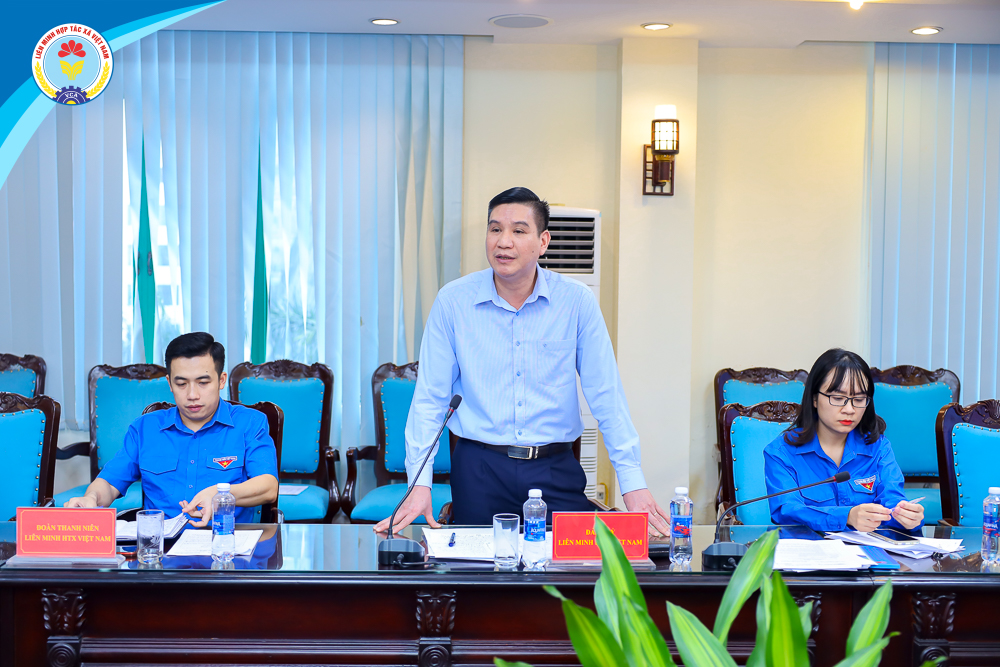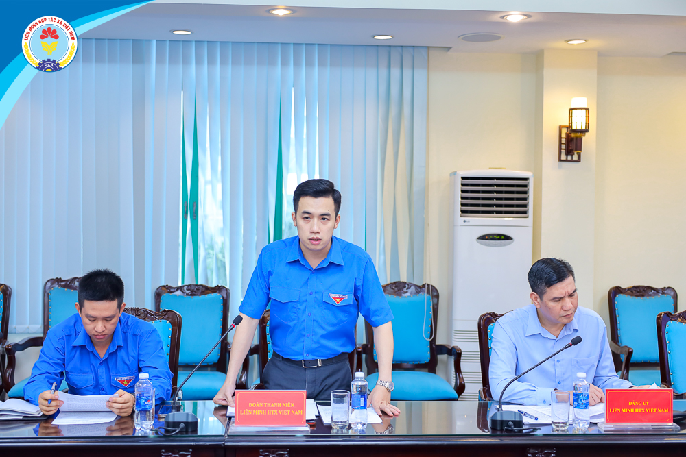 Đồng chí Nguyễn Duy Việt – Bí thư Đoàn Thanh niên Liên minh HTX Việt Nam phát biểu tại buổi làm việc
