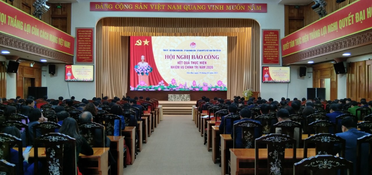 Chiều ngày 19/01/2020, tại Trung tâm Hội nghị tỉnh, Tỉnh ủy- HĐND- UBND- Ủy ban MTTQ Việt Nam tỉnh Yên Bái đã tổ chức trọng thể Hội nghị báo công kết quả thực hiện nhiệm vụ chính trị năm 2020.