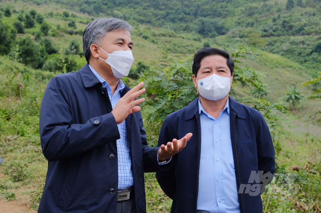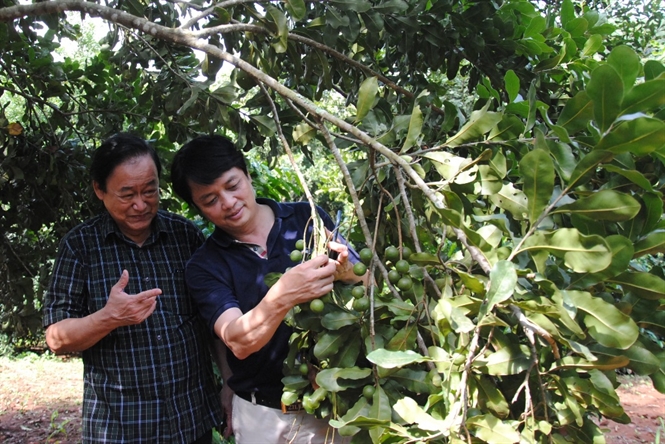 Ông Nguyễn Lân Hùng, Phó Chủ tịch Hiệp hội Mắc ca Việt Nam thăm vườn trồng tại Tây Bắc.