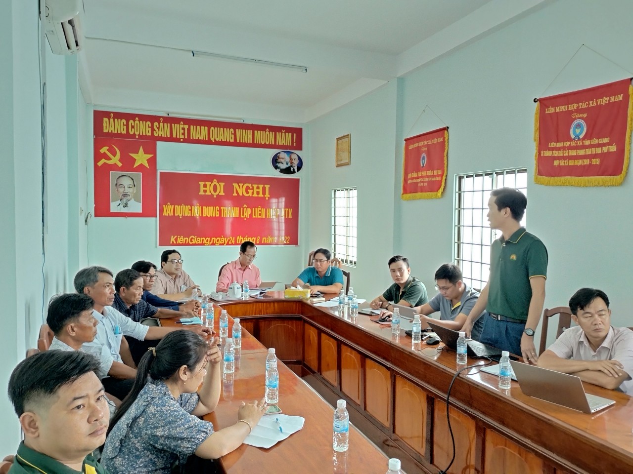 Sáng ngày 24/8/2022, Ban sáng lập Liên hiệp HTX Giang Thành tổ chức hội nghị triển khai kế hoạch vận động, hỗ trợ thành lập Liên hiệp HTX. Tham dự hội nghị có Ông Trần Thanh Dũng, Chủ tịch Liên minh HTX tỉnh; lãnh đạo Phòng nông nghiệp, Phòng Kinh tế các huyện Tân Hiệp, Giang Thành, Kiên Lương và các sáng lập viên Liên hiệp HTX.