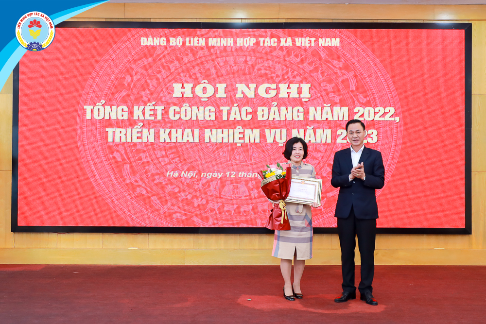 Ban chấp hành Đảng bộ Liên minh Hợp tác xã Việt Nam cũng trao Giấy khen cho 42 Đảng viên và 01 Chi bộ đã hoàn thành xuất sắc nhiệm vụ trong năm 2022.