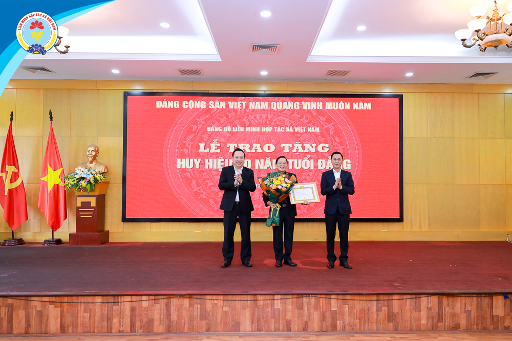 Nhân dịp này, Đảng bộ Liên minh Hợp tác xã Việt Nam tổ chức Lễ trao tặng Huy hiệu 50 năm tuổi Đảng cho đồng chí Nguyễn Văn Nên, nguyên trưởng Ban Kế hoạch Hỗ trợ, Liên minh Hợp tác xã Việt Nam