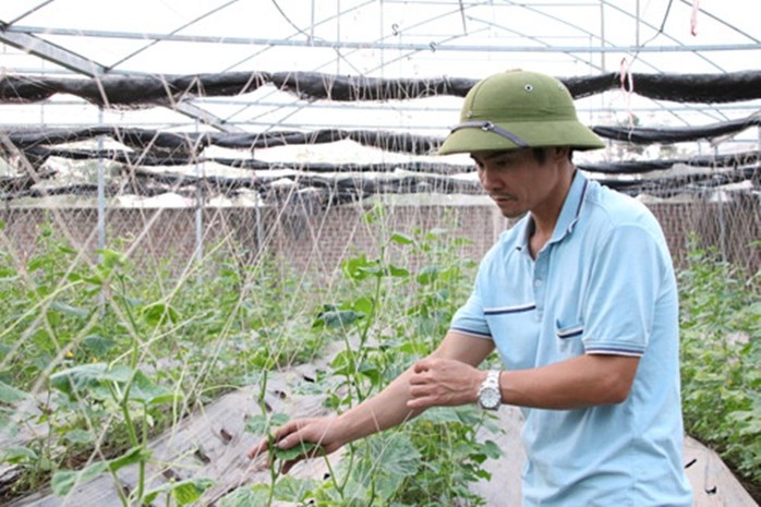 Giám đốc Lê Văn Tám trong nhà lồng trồng rau sạch bằng hữu cơ của mình