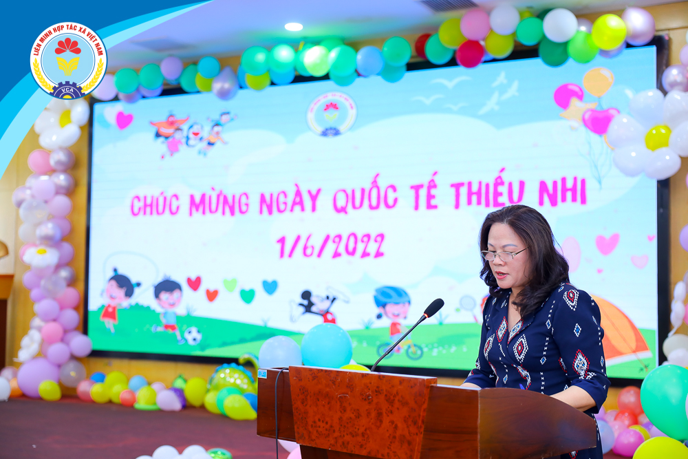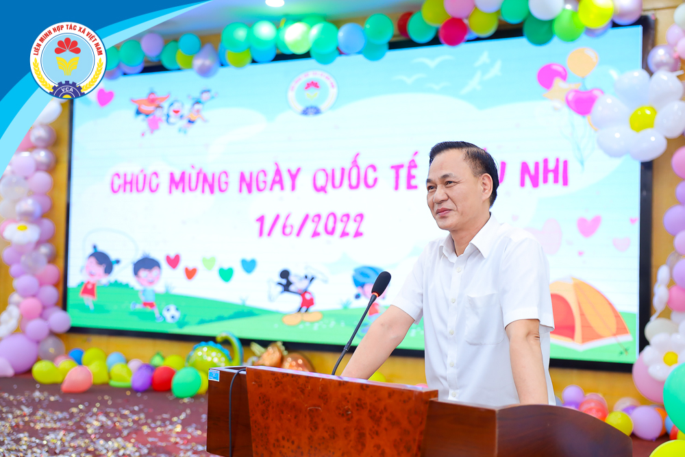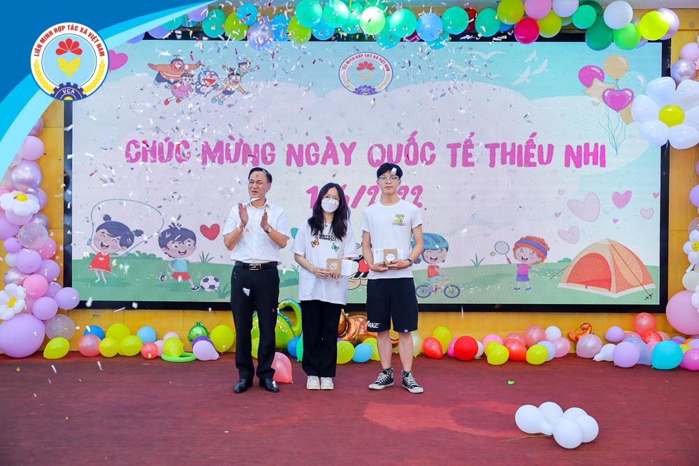 Thay mặt thường trực đồng chí Nguyễn Mạnh Cường, Bí thư Đảng ủy, Phó Chủ tịch Liên minh Hợp tác xã Việt Nam gửi lời chúc mừng, tuyên dương và trao phần thưởng cho các cháu đạt thành tích cao trong năm học 2021 - 2022 vừa qua. Cụ thể trong năm học 2021 -2022, có 131 cháu đạt thành tích trong học tập cấp trường, 1 cháu đạt thành tích trong các kỳ thi cấp quận/huyện, 2 cháu đạt thành tích trong các kỳ thi cấp tỉnh/thành phố, 1 cháu đạt thành tích trong các kỳ thi cấp Quốc gia, 2 cháu đạt thành tích trong các kỳ thi cấp Quốc tế.
