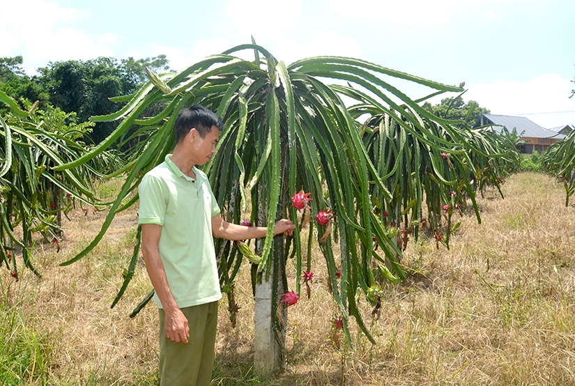 Vườn thanh long ruột đỏ của anh Hoàng Văn Len, thôn 1 Minh Thái, xã Thái Sơn (Hàm Yên) thu trên 150 triệu đồng/năm.
