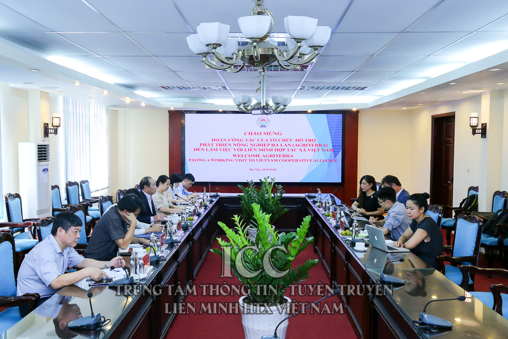 Sáng 10/8, tại Hà Nội, Liên minh hợp tác xã Việt Nam (VCA) làm việc với đoàn công tác của Tổ chức hỗ trợ phát triển nông nghiệp Hà Lan (Agriterra) về hỗ trợ xây dựng “Trang thông tin Trung tâm tri thức hợp tác xã”.