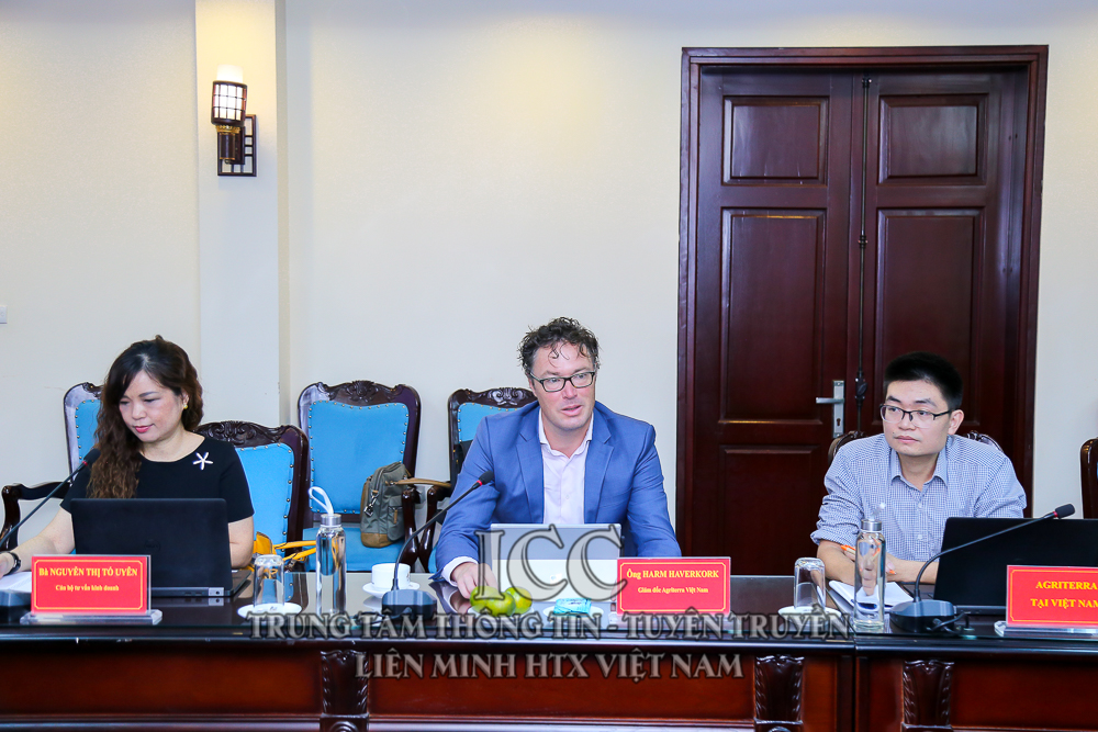 Phát biểu tại buổi làm việc, đồng chí Chủ tịch Nguyễn Ngọc Bảo nhất trí và đánh giá cao sáng kiến của Agriterra về việc thành lập “Trang thông tin Trung tâm tri thức HTX”. Đồng chí Chủ tịch Nguyễn Ngọc Bảo đề nghị VCA sẽ thành lập một nhóm làm việc cùng với Agriterra để cùng nhau nắm bắt, chia sẻ thông tin tới các cơ quan liên quan. Đồng chí Chủ tịch cho rằng, đây là giai đoạn 1 với mục đích đánh giá tác động thực tiễn. Giai đoạn 2 sẽ kết nối giữa VCA với tất cả các HTX ở Việt Nam. Biến việc cung cấp thông tin, trí thức này trở thành một dịch vụ, trong đó hỗ trợ các thành viên, tư vấn, hỗ trợ cho thành viên, giai đoạn này sẽ được triển khai năm 2022.