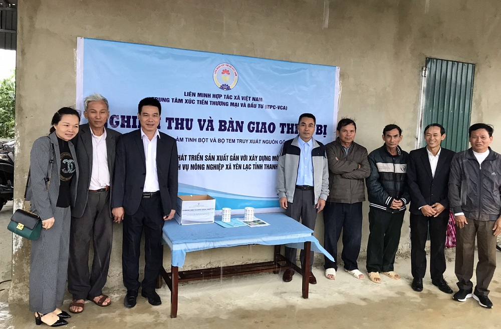 Cuối tháng 10/2020, Trung tâm Xúc tiến Thương mại và Đầu tư (Trung tâm XTTM&ĐT) thuộc Liên minh Hợp tác xã Việt Nam phối hợp với Liên minh Hợp tác xã tỉnh Thanh Hóa đã tổ chức bàn giao dây chuyền làm tinh bột và bộ truy xuất nguồn gốc sản phẩm cho HTX dịch vụ nông nghiệp xã Yên Lạc, huyện Như Thanh, tỉnh Thanh Hóa thuộc nhiệm vụ xây dựng mô hình sản xuất kinh doanh gắn với chuỗi giá trị.