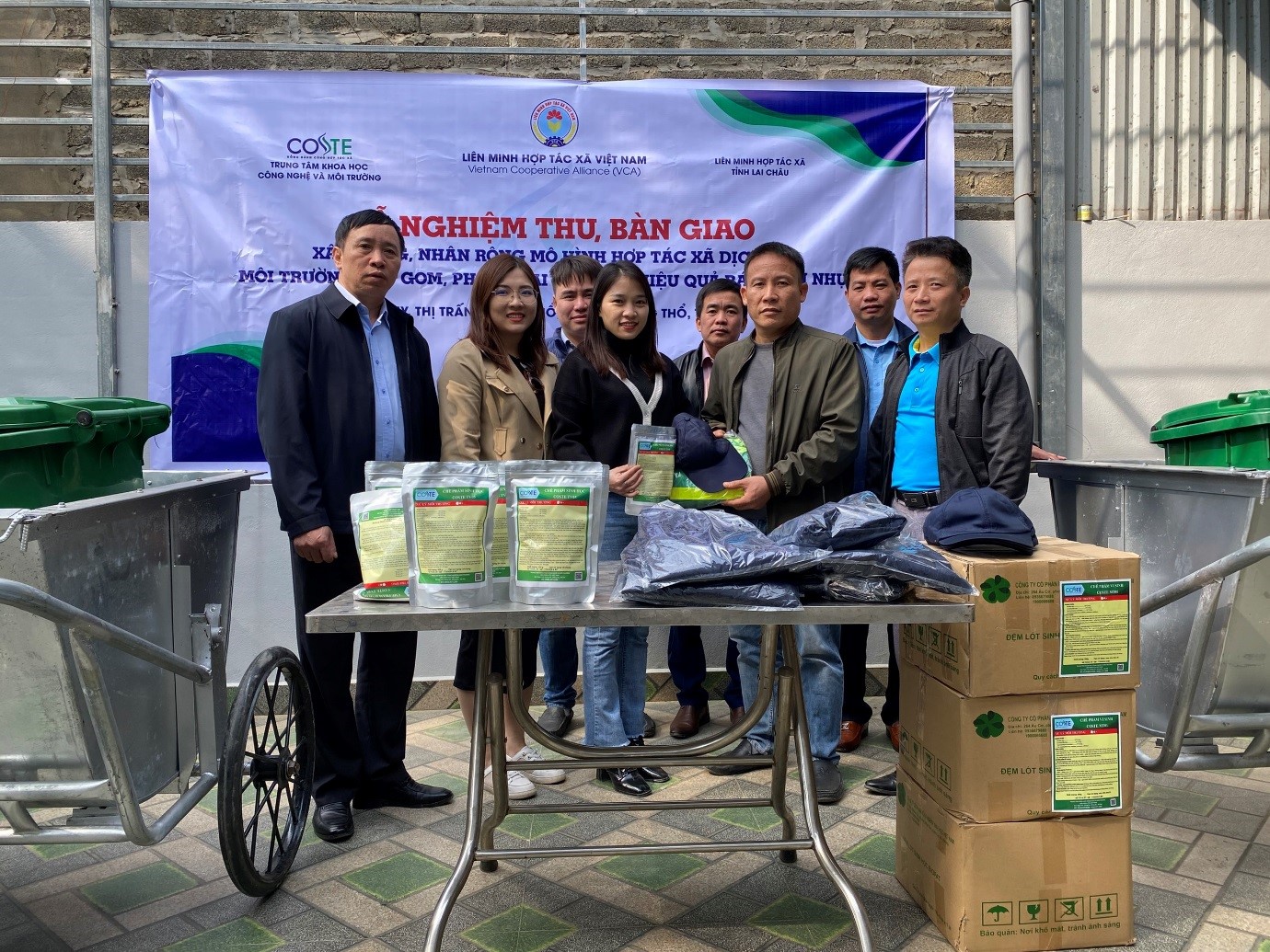 Trong tình hình khó khăn, cấp bách do dịch bệnh Covid 19, bằng sự nỗ lực, quyết tâm của các cán bộ Trung tâm KHCN và MT, Liên minh HTX tỉnh Lai Châu và lãnh đạo Hợp tác xã, các nội dung hỗ trợ, xây dựng mô hình đã hoàn thành dự án đúng tiến độ, đảm bảo chất lượng và hiệu quả. Các nội dung hỗ trợ bao gồm: quần áo bảo hộ lao động, các xe đẩy tay, thùng rác, chế phẩm vi sinh, hệ thống quản lý chất lượng môi trường (ISO 14000:2015).