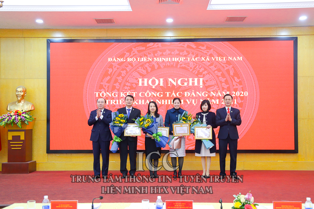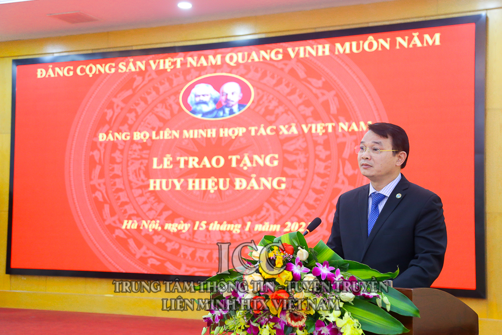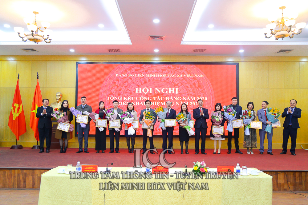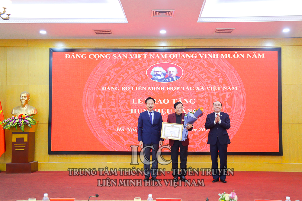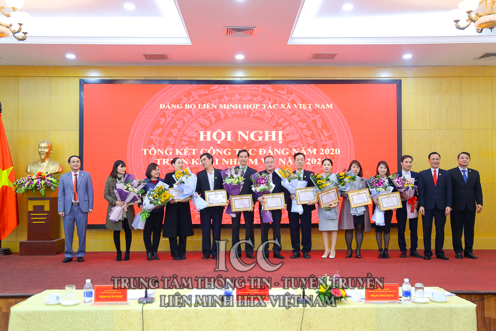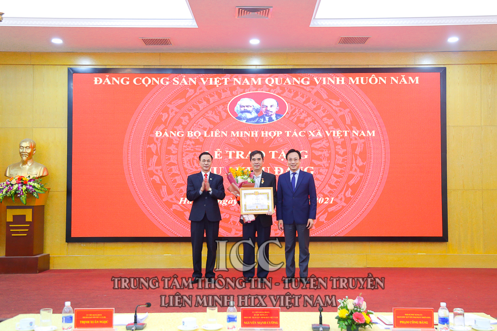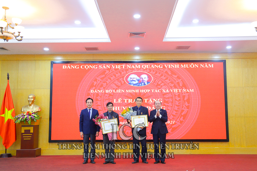 Nhân dịp này, Đảng bộ Liên minh HTX Việt Nam tổ chức Lễ trao tặng Huy hiệu 30 năm tuổi Đảng cho đồng chí Nguyễn Mạnh Cường, Viện trưởng Viện phát triển Kinh tế hợp tác; trao tặng Huy hiệu 40 năm tuổi Đảng cho đồng chí Nguyễn Tiến Quân - Nguyên Chủ tịch Liên minh HTX Việt Nam và đồng chí Nguyễn Văn Thanh - Nguyên Tổng Giám đốc Trung tâm Khoa học Công nghệ và Môi trường; Trao tặng Huy hiệu 45 năm tuổi Đảng cho đồng chí Nguyễn Văn Nên - Nguyên Trưởng Ban Kế hoạch Hỗ trợ. Trao bằng khen cho 4 chi bộ hoàn thành xuất sắc nhiệm vụ, và 32 đảng viên hoàn thành xuất sắc nhiệm vụ.