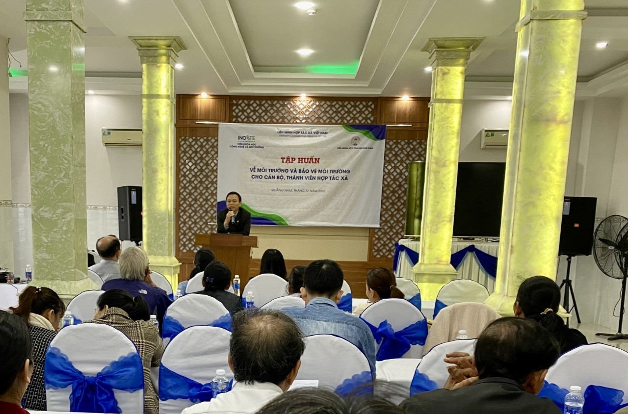 Vừa qua, Viện Khoa học Công nghệ và Môi trường phối hợp với Cơ quan Thường trực Liên minh HTX Việt Nam tại khu vực miền Trung - Tây Nguyên tổ chức lớp tập huấn “Bảo vệ môi trường nông nghiệp nông thôn” cho 45 cán bộ, thành viên đến từ các hợp tác xã nông nghiệp trên địa bàn tỉnh Quảng Nam.