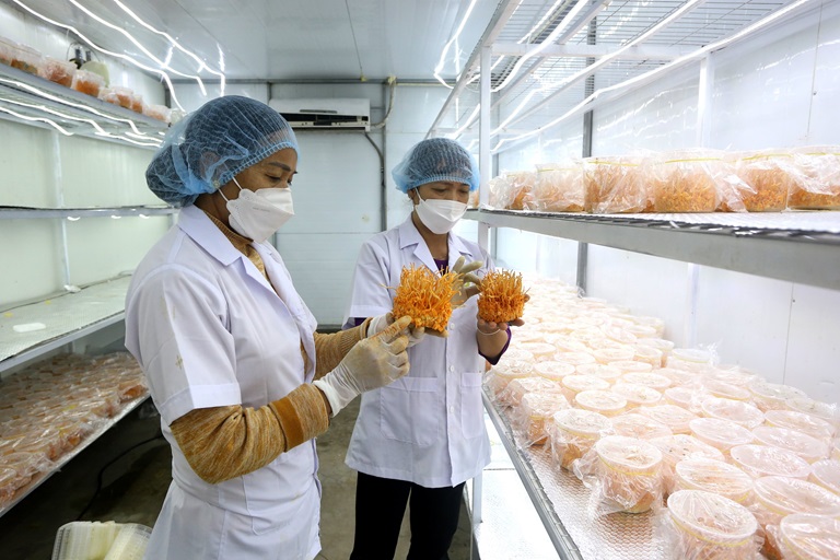 HTX Nấm Tam Đảo ứng dụng KHKT vào sản xuất, nâng cao chất lượng sản phẩm. Ảnh: Thế Hùng