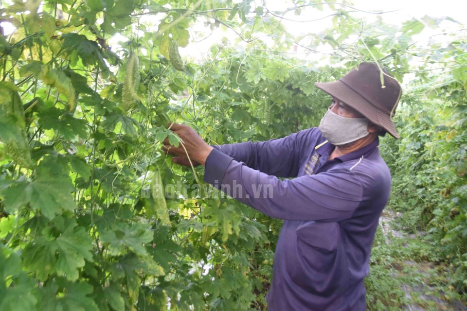 Điển hình như nông dân Thạch Mận, ấp Lạc Hòa, xã Thạnh Hòa Sơn trồng 1.000m2 khổ qua trong mùa giãn cách xã hội và hiện nay đang cho thu hoạch khoảng 50 - 70kg/ngày, giá bán 8.000 đồng/kg, lợi nhuận ước đạt 08 triệu đồng/1.000m2. Theo ông Mận, để vừa ở nhà chủ động phòng, chống dịch bệnh (PCDB) Covid-19 và vừa có hàng hóa nông sản bán trước và sau mùa lễ Sêne Đôlta nên trong thời gian thực hiện giãn cách xã hội, ông xuống giống trồng xen kẻ 2.000m2 khổ qua, mỗi ruộng ông xuống giống cách nhau 20 ngày vừa có hàng hóa thu hoạch bán mỗi ngày, có thu nhập ổn định.