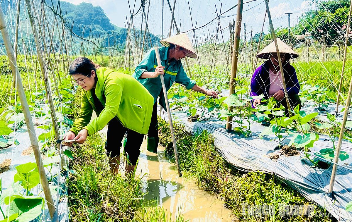 Đồng chí Ma Thị Nhường (ngoài cùng bên trái), Bí thư Chi bộ thôn Làng Chạp, xã Trung Sơn (Yên Sơn)